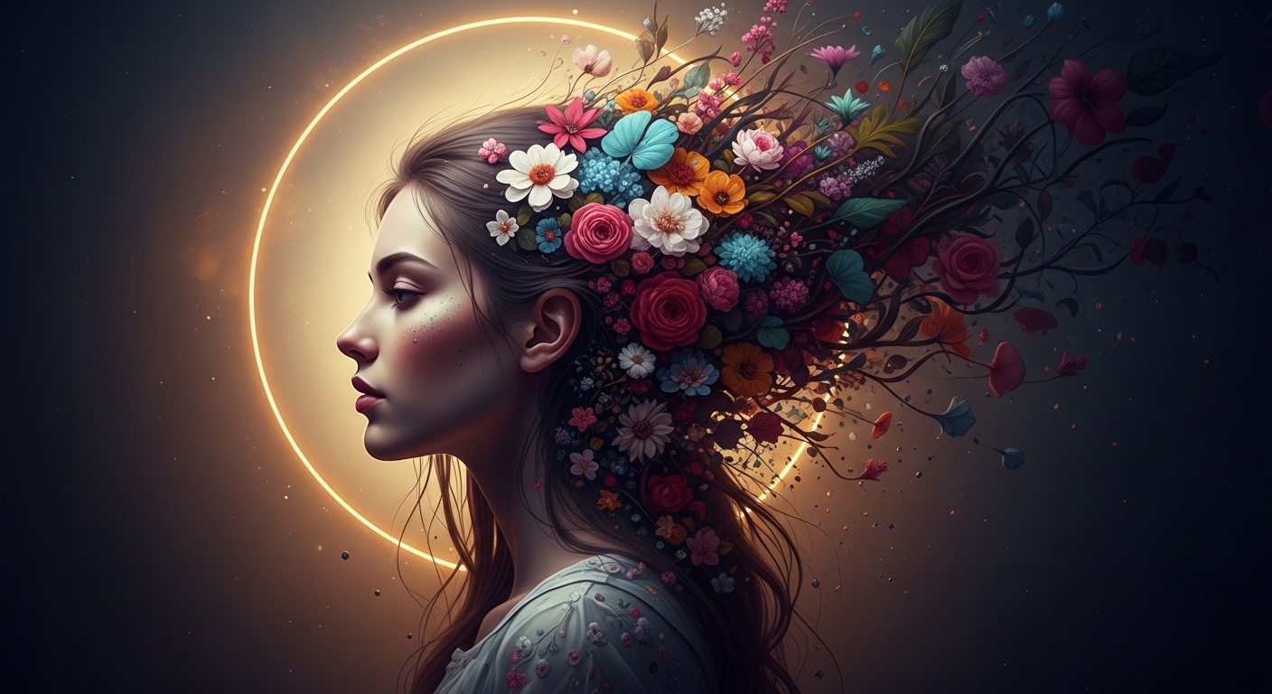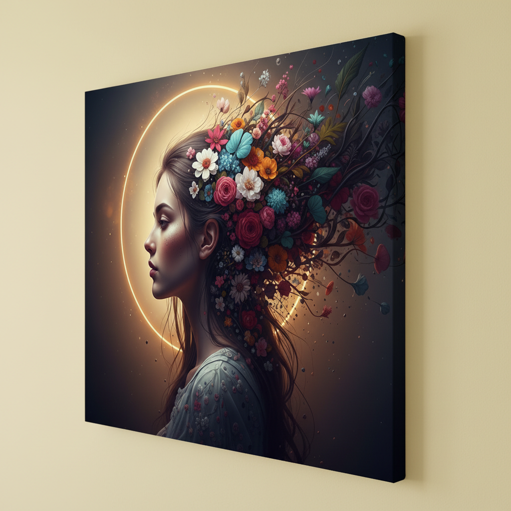 Floral Hair Girl Wall Art for Home & Office Decor | Art No. 897