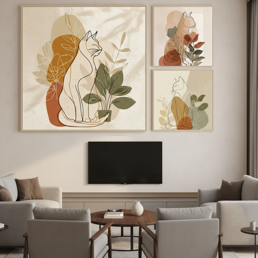 Be the first to review “3 Panel Set Cat Boho Wall Art for Home & Office Decor | Art No. 940”