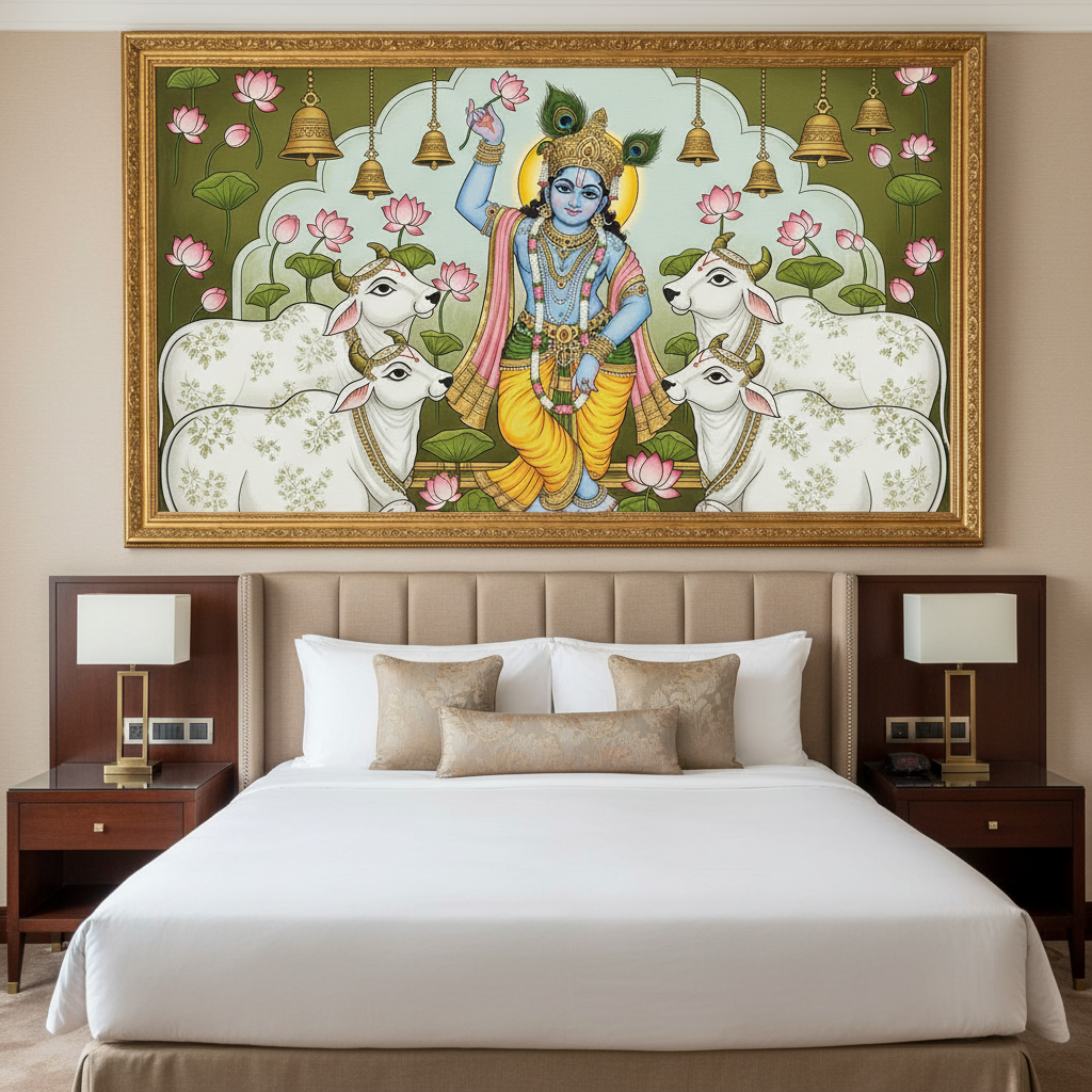 Lord Krishna Ji with Cows Pichwai Wall Art for Home Decor | Art No. 1004