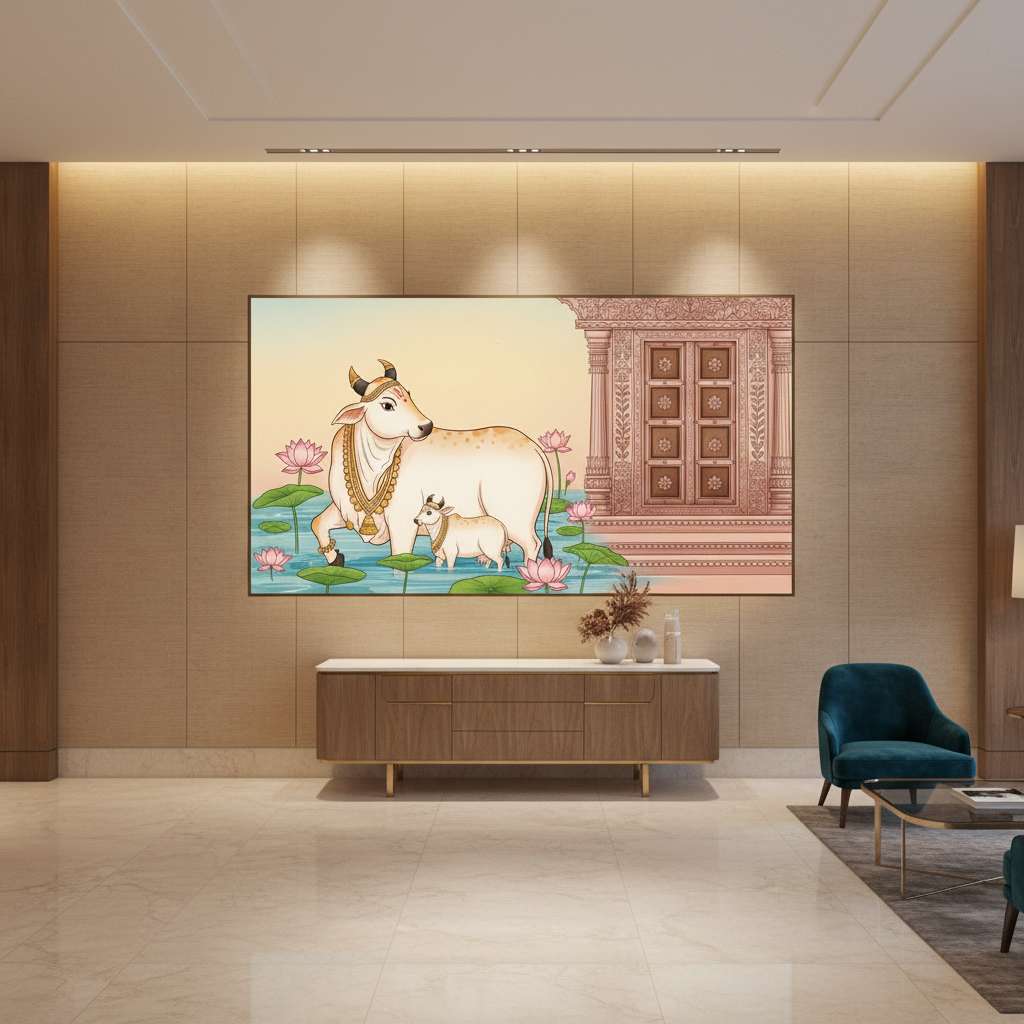 White Cows with Lotus Pichwai Wall Art for Home & Office Decor | Art No. 1002