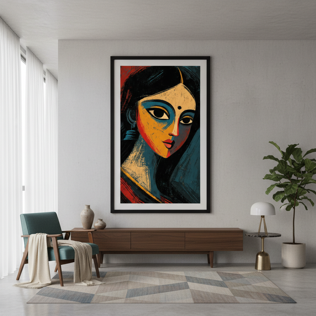 Kalighat Style Woman Face Wall Art for Home & Office Decor | Art No. 961