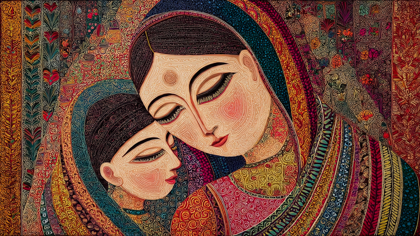 Mother and Child Madhubani Wall Art for Home Decor | Art No. 979