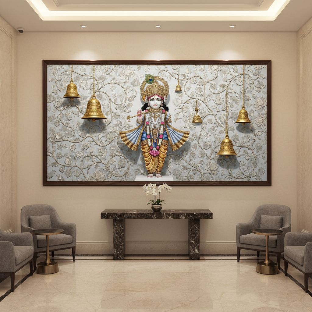 Be the first to review “Lord Krishna Ji With Flute Pichwai Wall Art for Home Decor | Art No. 995”