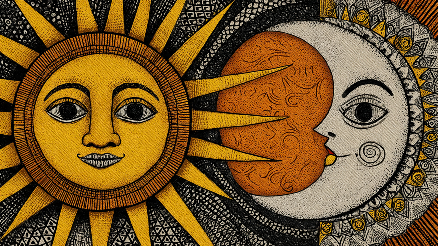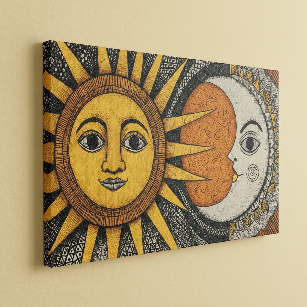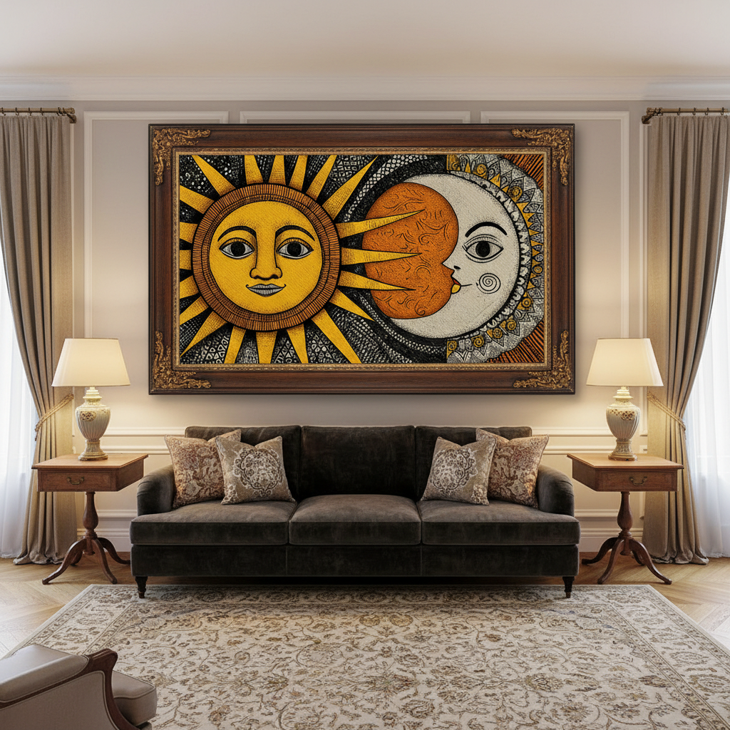 Sun and Moon Geometric Madhubani Wall Art for Home Decor | Art No. 983