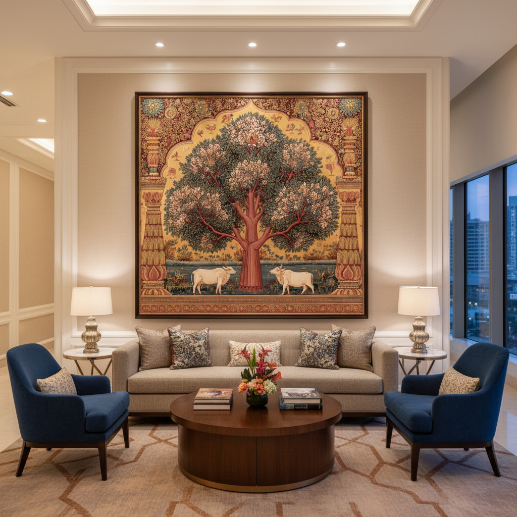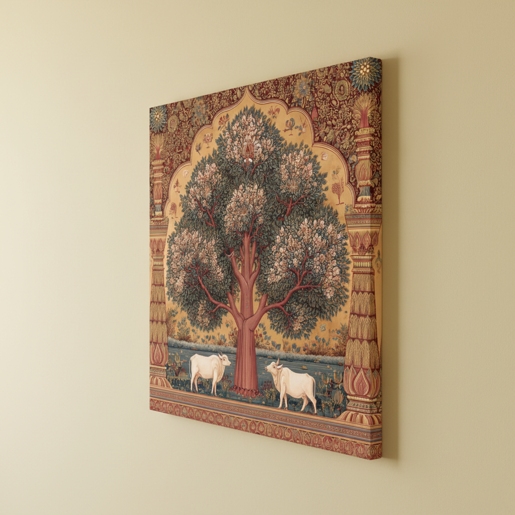 Cows Under Kadamba Tree Pichwai Wall Art for Home Decor | Art No. 986