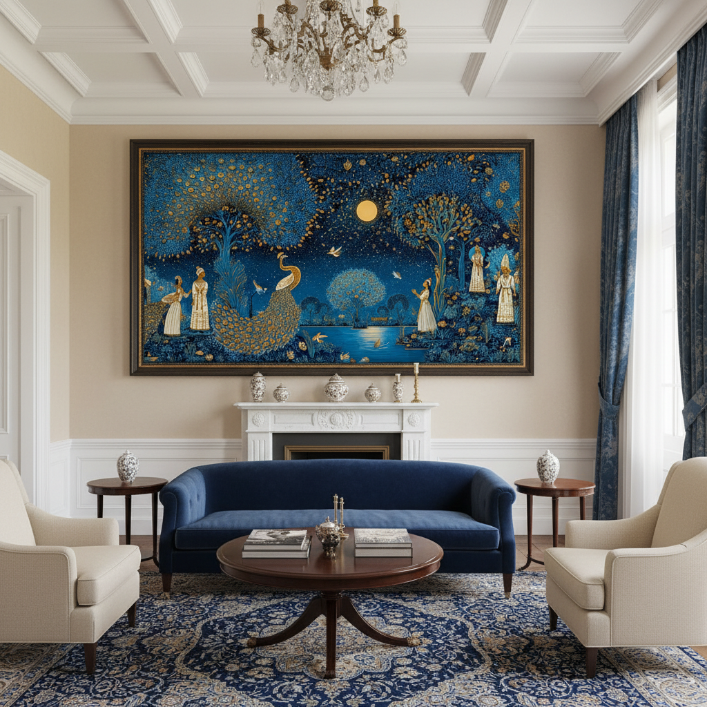 Peacock in Moonlight Pichwai Wall Art for Home Decor | Art No. 987