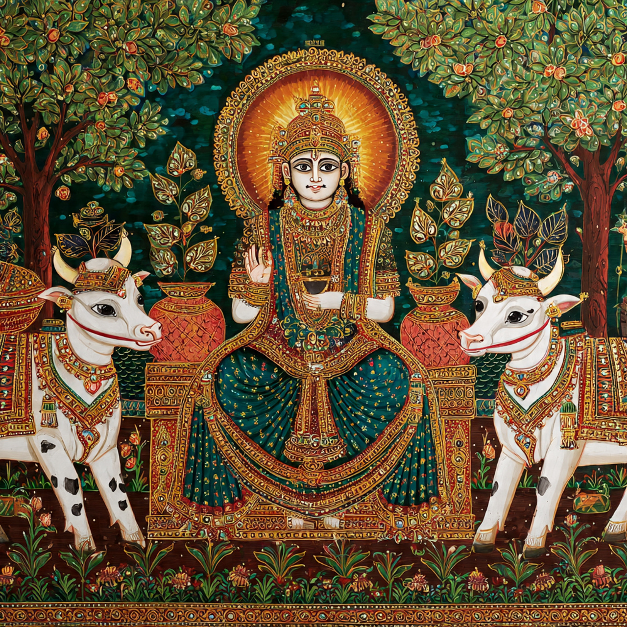 Cows Under Kadamba Tree Pichwai Wall Art for Home Decor | Art No. 986