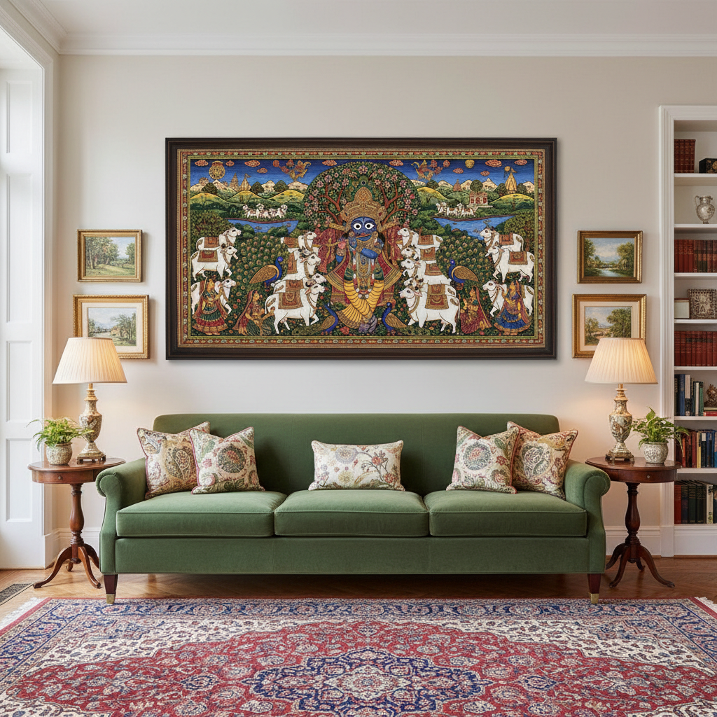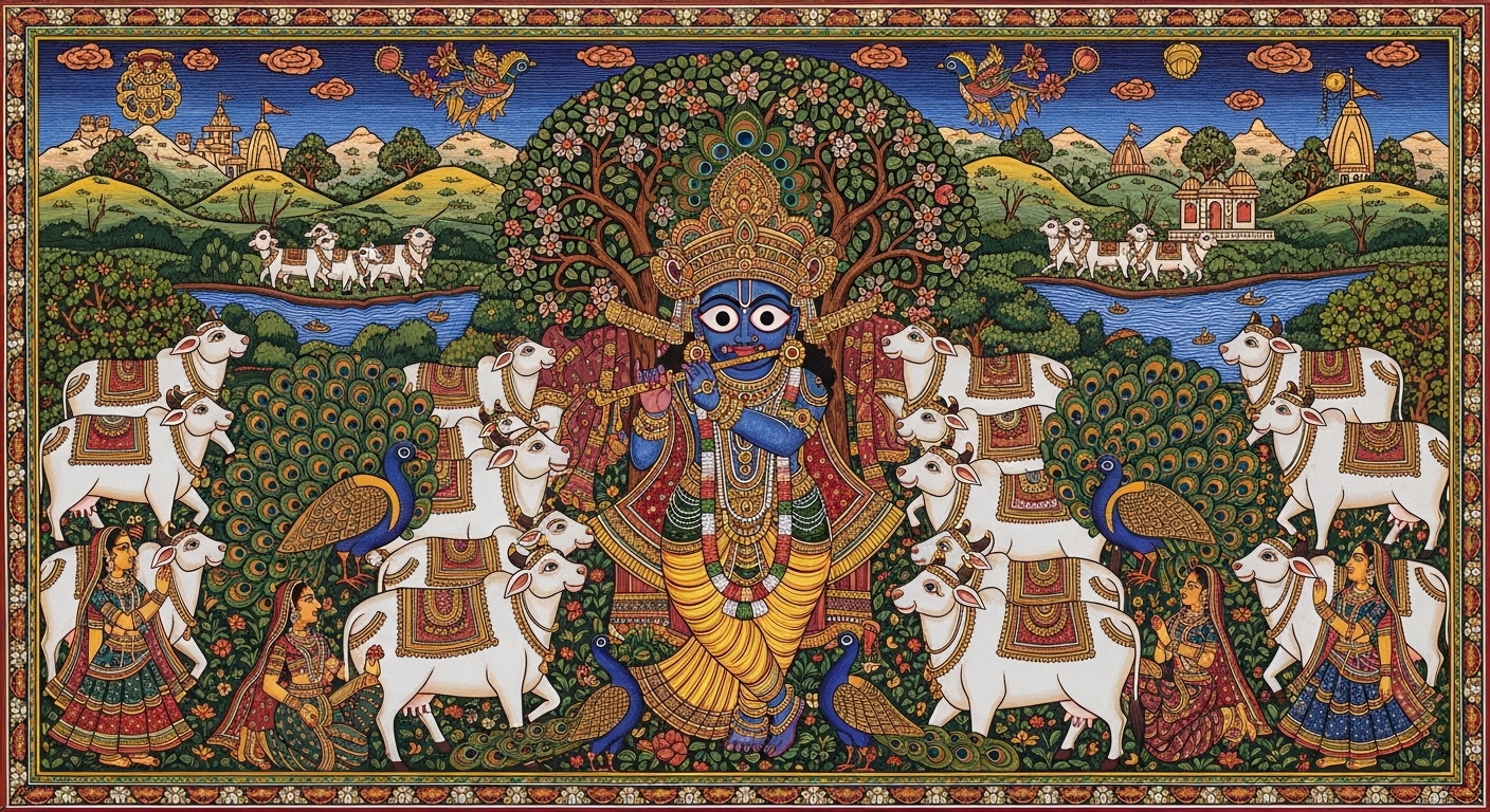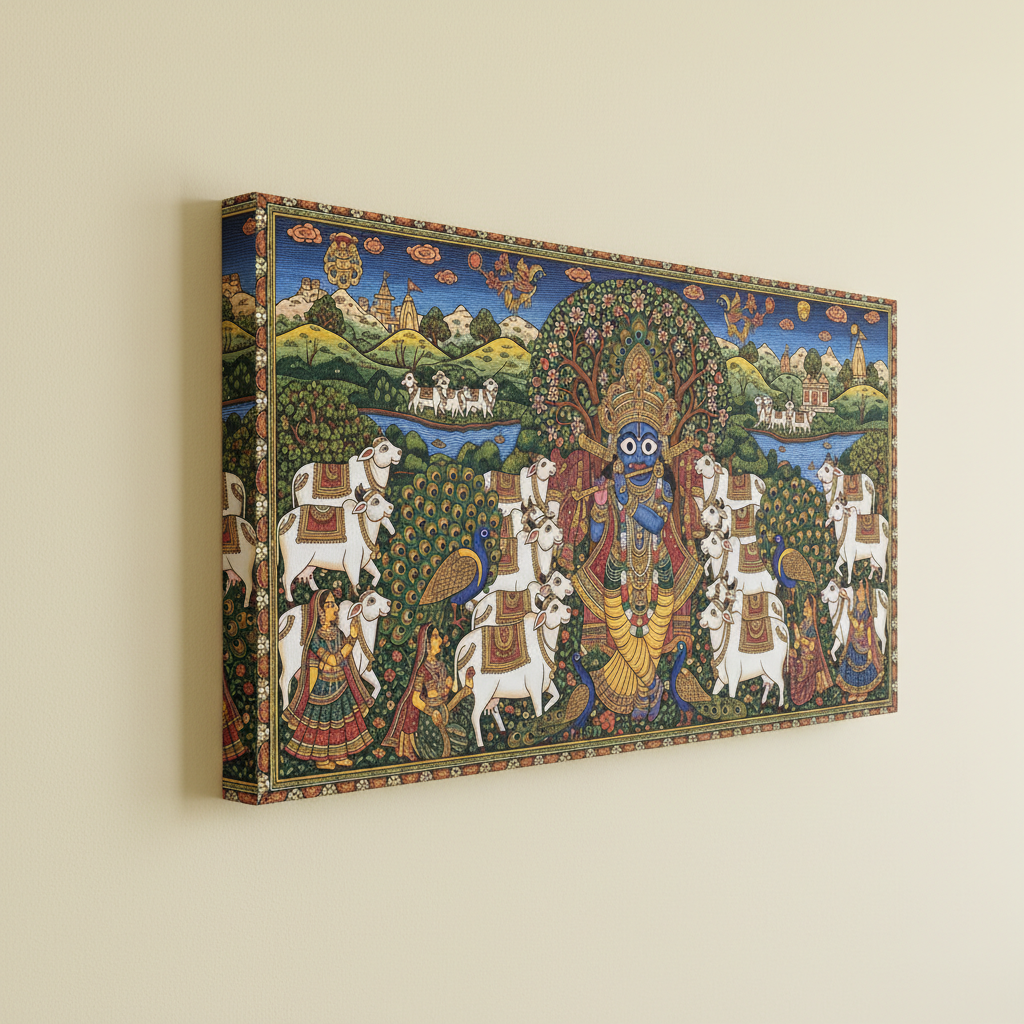 Shrinath Ji with Cows Pichwai Wall Art for Home Decor | Art No. 990