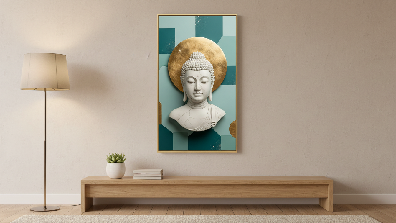 Serene Stone Buddha in Abhaya Mudra Wall Art for Home Decor | Art No. 404