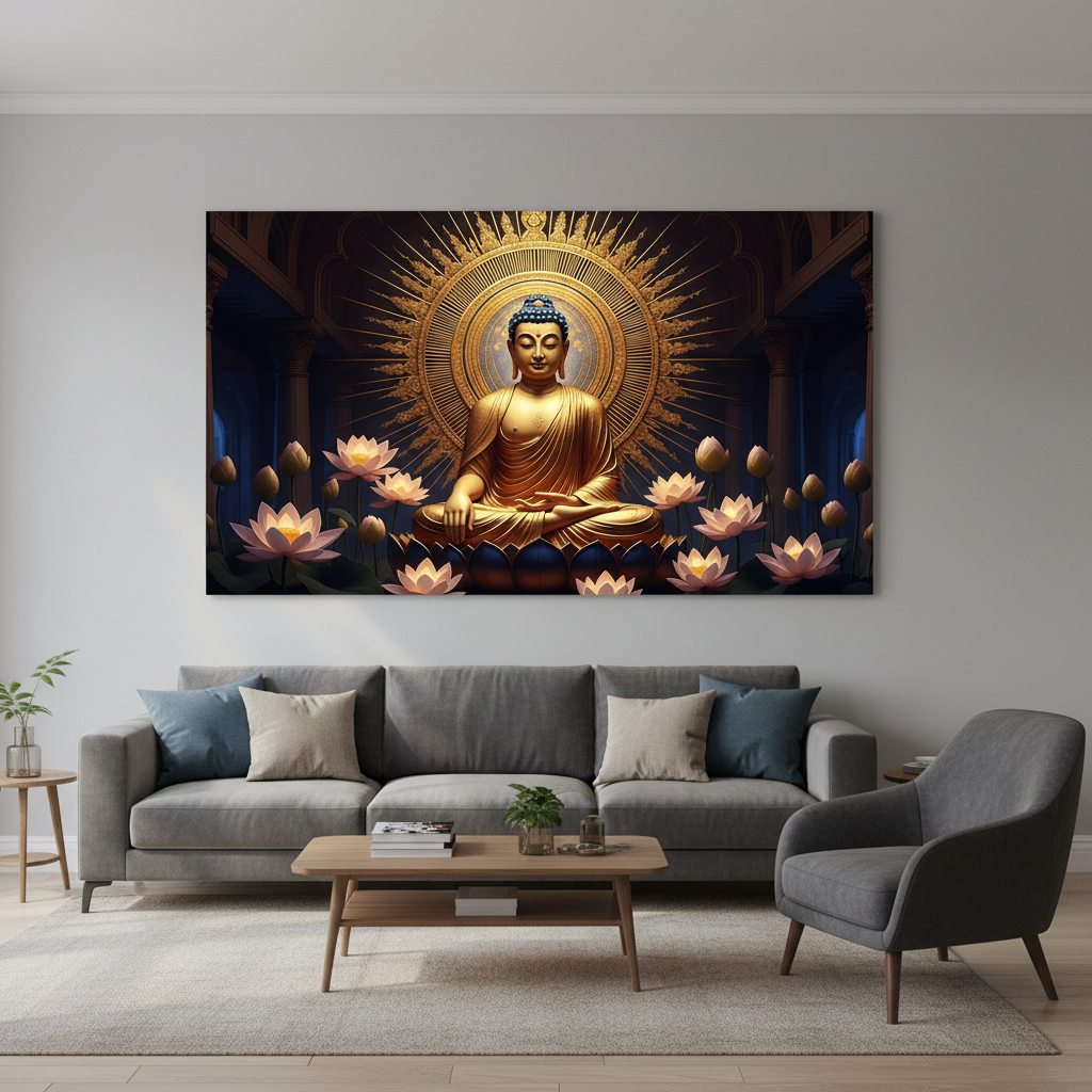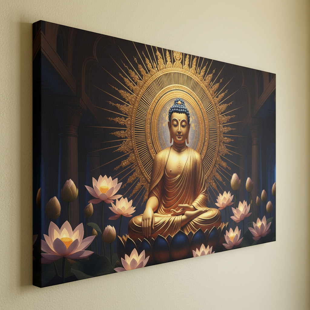 Golden Buddha in Meditation Wall Art for Home & Room Decor | Art No. 474