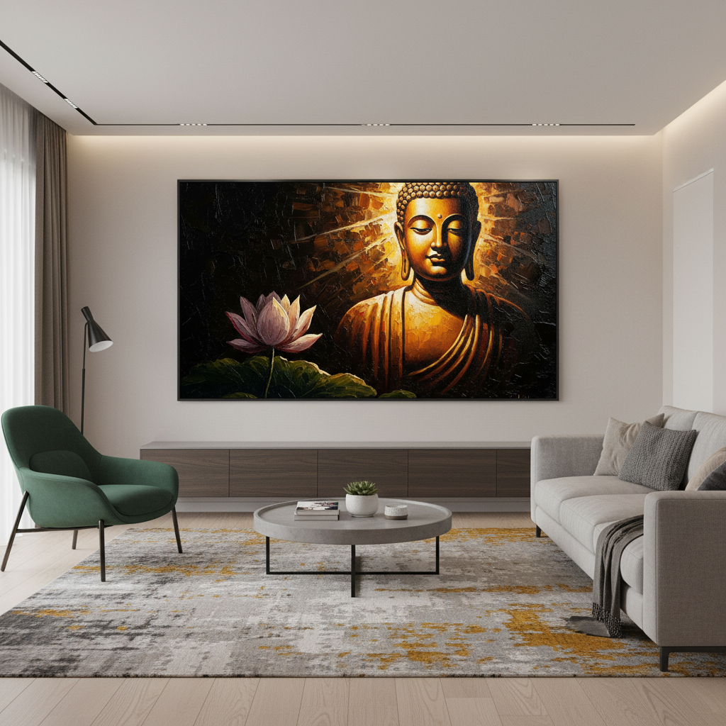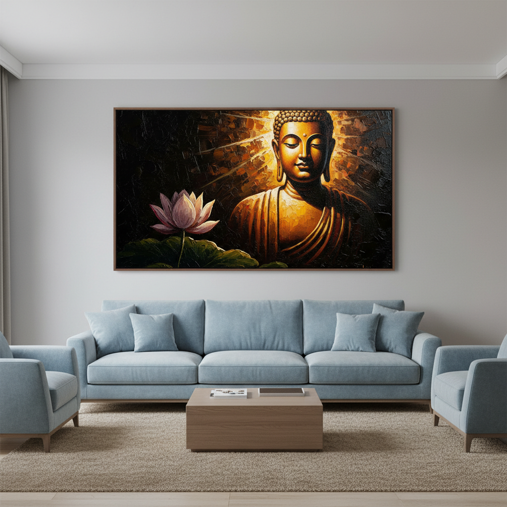 Golden Buddha with Flower Wall Art for Home & Room Decor | Art No. 482