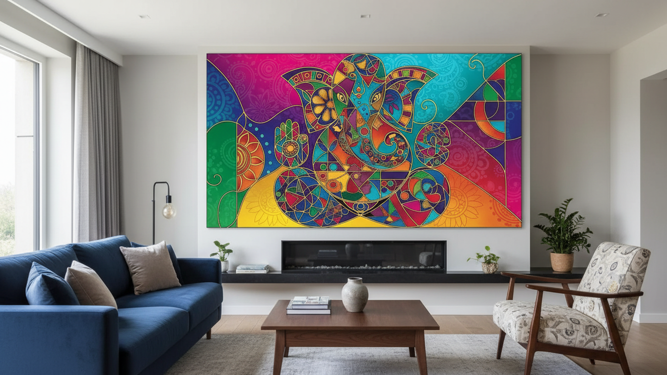 Colorful Shri Ganesha Radiant Wall Art for Home & Office Decor | Art No. 584