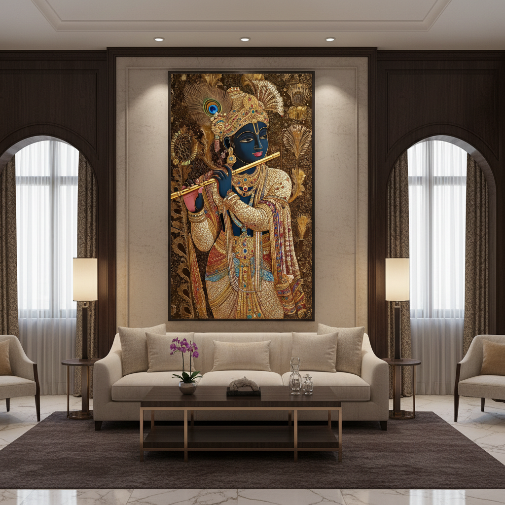 Mystical Lord Krishna With Flute Wall Art for Home & Office Decor | Art No. 869